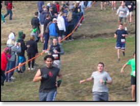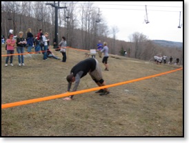 The race starts off on the top of the bunny slope at Mount Snow with the MC psyching everybody up for the event, and he did an awesome job of it. Singing “Nananana Goodbye” to an Osama picture and his whole act really gets you fired up to race. The smoke starts, the horn sounds, and you’re off for a short run down the bunny slope, and then your climb to hell to begins. This wasn’t really a running race as it was a climbing race, and that starts right off the bat.