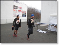 SCREW THAT! Wearing a wetsuit from the start would have been smart. I saw plenty of people doing it, but I had decided to wear compression gear instead. Big mistake. Everybody with me agreed, and we kept out wetsuits on. From there it was a quick run to the “finish”. Lap one complete! Wow! That was so much harder than anticipated. I had way underestimated the role the cold would play, and I was promptly slapped across my face with reality. It was tough. It was no joke.