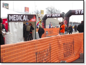 The final medical tent before the pit area was a horror show of hypo people. Many were cocoon wrapped and shaking uncontrollably. You looked from shell shocked face to shell shocked face and realized that even making one lap in this race was an accomplishment. After destroying a dozen cookies, some broth, and some jello water, it was off to the pit area to prep for round 2.