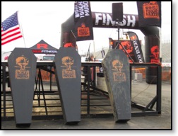 Finishers got the customary Tough Mudder orange headband at the finish line, and official finishers got a custom kettlebell too. I did not finish, so I didn’t get one. Personally, I think they should have switched up the headbands… Maybe black band and orange letters instead of the opposite. I can see this being a nightmare for TM seeing as only 10 people earned a headband, and they’d have to have at least 800 on hand. Still, they could save them for their next WTM event. It’d just be nice for finishers to get something a little different to signify their tremendous feat.