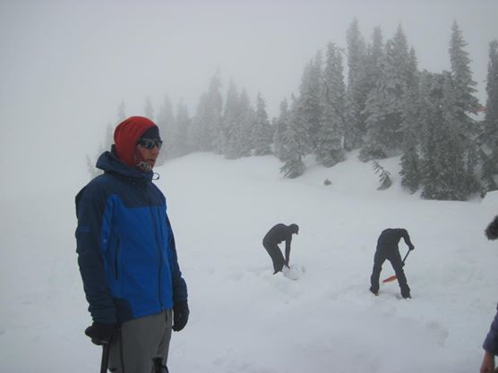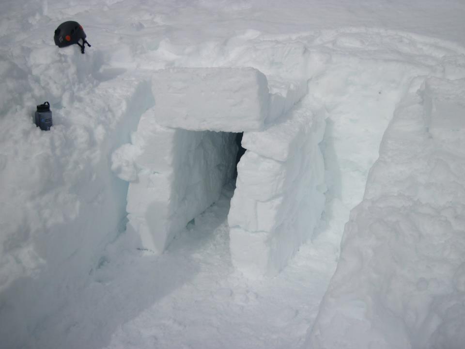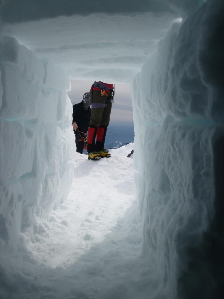 After crevasse rescue, we practiced ascending fixed lines and rappelling. It was a nice break up to the day. I’m not a fan of fixed lines and personally wouldn’t climb using them (lines that I did not fix at least), but that’s really a philosophical difference or stylistic difference. It’s like preferring chocolate over vanilla. Nobody is right. It’s just the way you feel. The rappelling was fun since I hadn’t done that since my ice climbing injury a couple months prior. While this was going on, there was also a group learning how to construct a snow cave. I messed around long enough for me to feel guilty watching the others toil away digging in the snow, so I headed over to do my share in building the cave.
