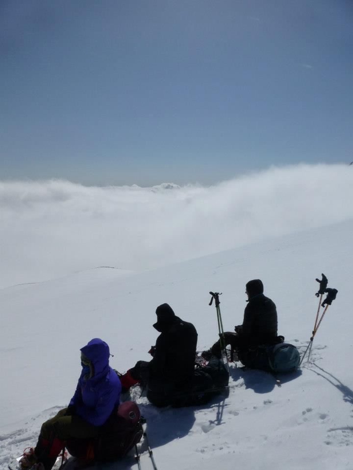 The descent was quick and uneventful. It was quite painful though. The way my ankle had to flex in descent was incredibly painful. I found myself biting my bottom lip a lot to stifle what would have been embarrassing yelps of pain. As if that wasn’t enough, the snow on the flats was crusted over meaning you’d randomly breakthrough shooting your ankle in a random direction. Typically it’s so routine to entirely escape notice, but is was very painful with my injury. Buuut I’m being a little bitch. In any event, we were quickly down and in the van back to HQ. We put the gear away and headed out to a late lunch clients and guides together. It was great to unwind, share some beers, and have some fab non-camp prepared food. I looked around at everybody around the table and realized I was going to miss these people. On top of that, I learned a lot while I was on the mountain.