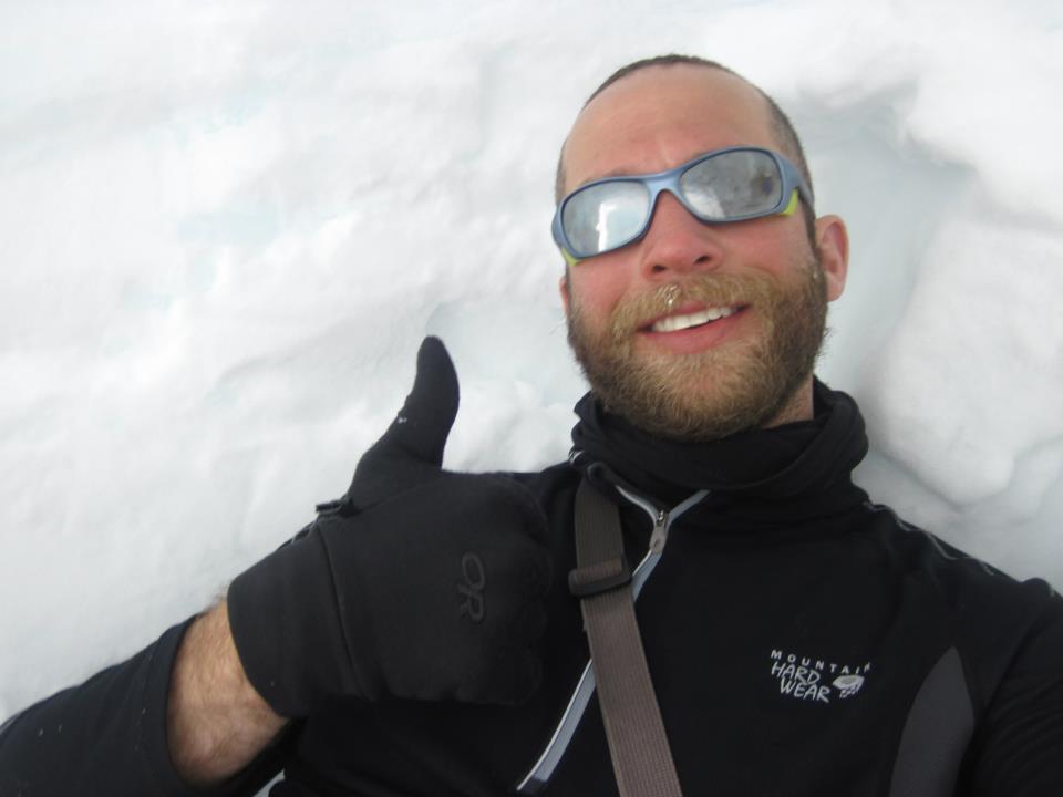 Day 2 – Weather had intensified overnight. The temps dipped below zero and the sides of the tents had been pushed in by snow drifts. I woke up and began shoveling snow away from all the tents. We had a good breakfast, and all I could think of was how freaking cold it was. The day itself was really educational though. We learned how to search for people using avalanche transceivers. Everybody was tested and had to blindly find a buried mock victim as quickly as possible; both single and double victim scenarios. After that, we had to work as a team to find multiple buried bodies. Our leader for the exercise was another client and one of the two women on the expedition. She did a great job of leading and got us through the exercise pretty quickly. After this, we learned how dig avalanche pits and use them to assess the stability of snowpack on the slopes as well as other warning signs of avalanche activity. We wrapped up the day with some rudimentary crampon work. The steep slope made my injured ankle throb with pain, and it was by no means easy. I almost asked if I could sit out since I felt really confident on crampons whereas some clients were learning to use them for the first time. I didn’t want to isolate myself from our evolving team though, so on I went.